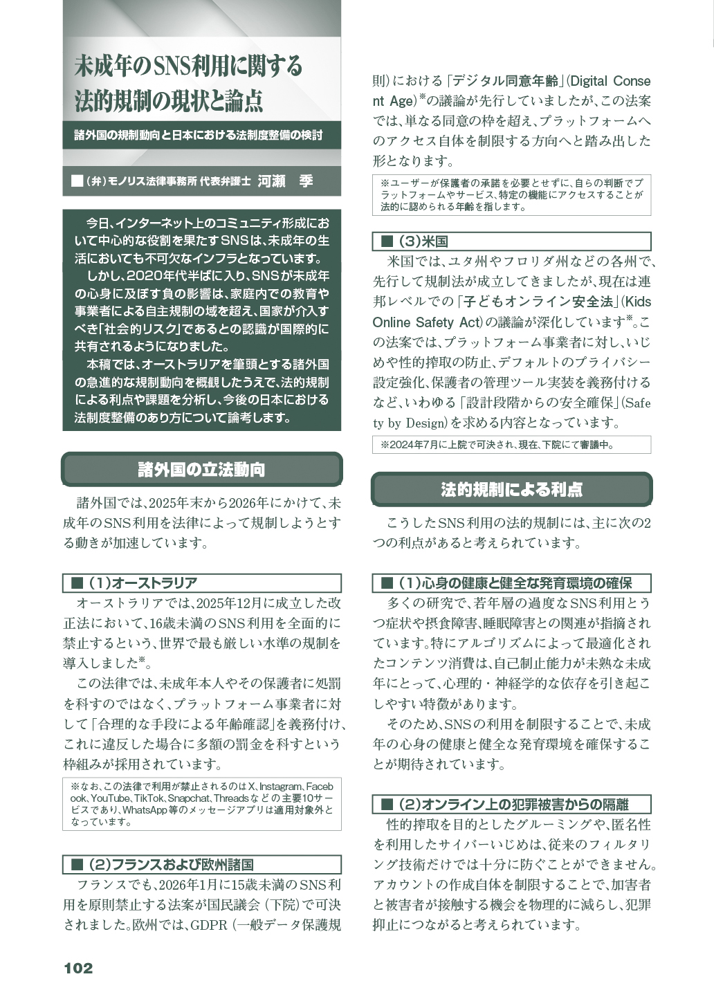 - 未成年のSNS利用に関する法的規制の現状と論点