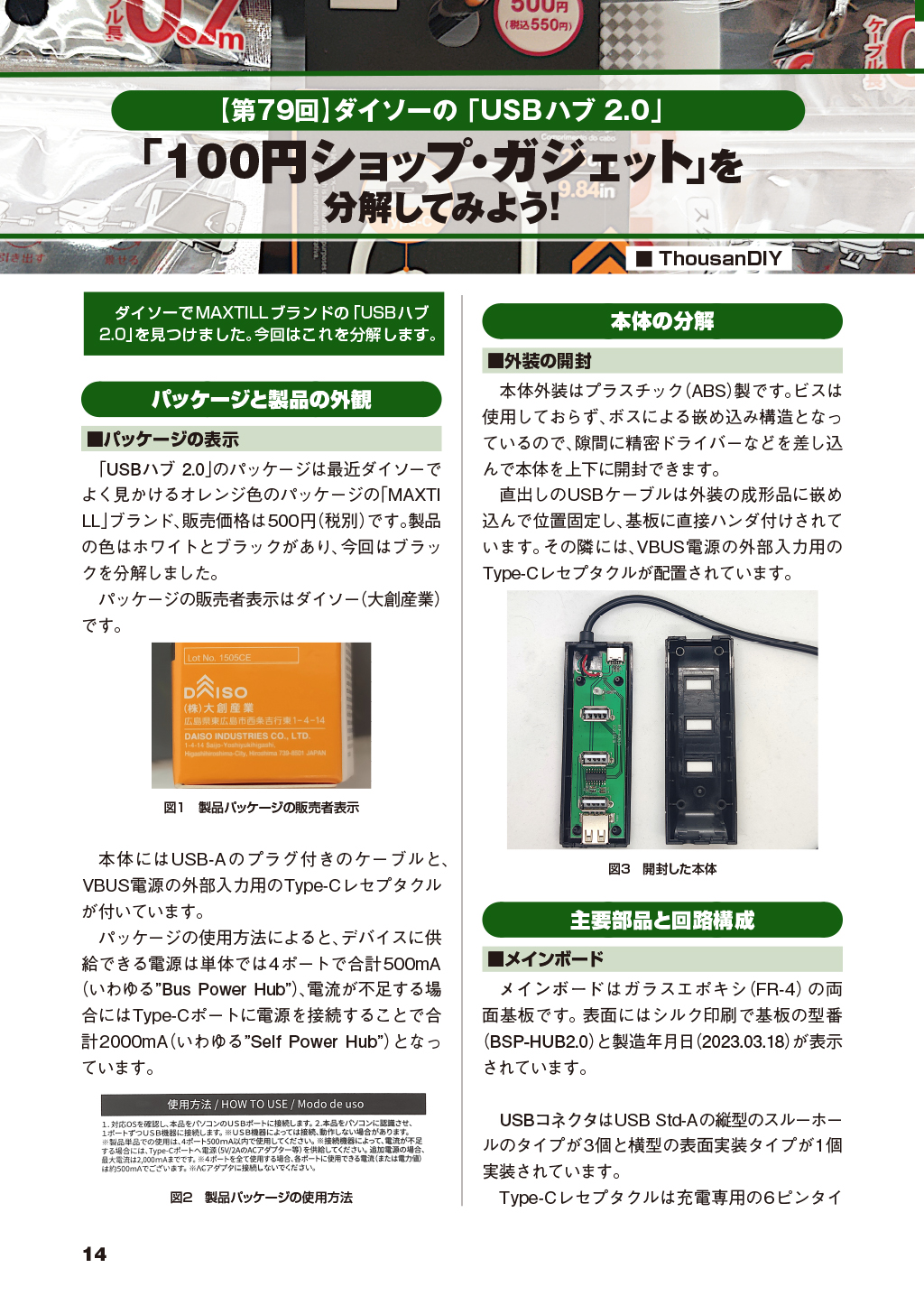 - <100円ガジェット分解>【第79回】ダイソーの「USBハブ 2.0」