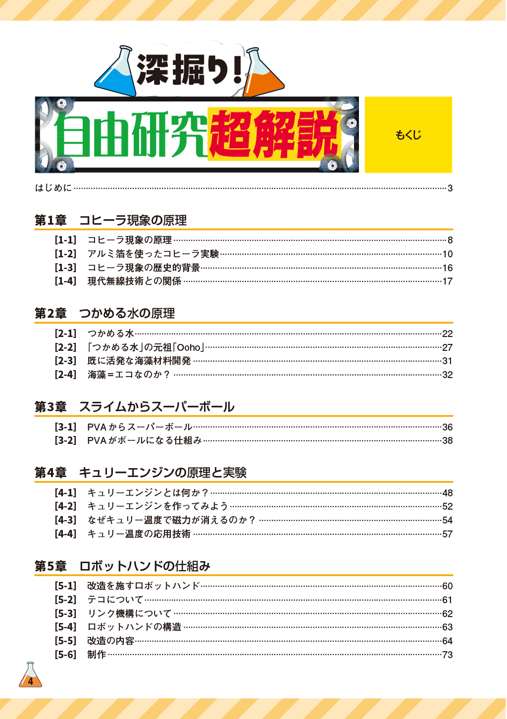 小学生向けと思われがちな自由研究の題材も、よく見てみると大人でも興味を引かれるものがあったりします。 本書では、そんな自由研究のネタから「太陽熱温水器」「コヒーラ効果」「スライムから作るスーパーボール」「ロボットハンド」などを選び、その原理を中高生~大人向けに詳細に解説。また自由工作などでよく使われるものの意外と知られていない「ゴムの力」や「接着剤の力」についても紹介します。